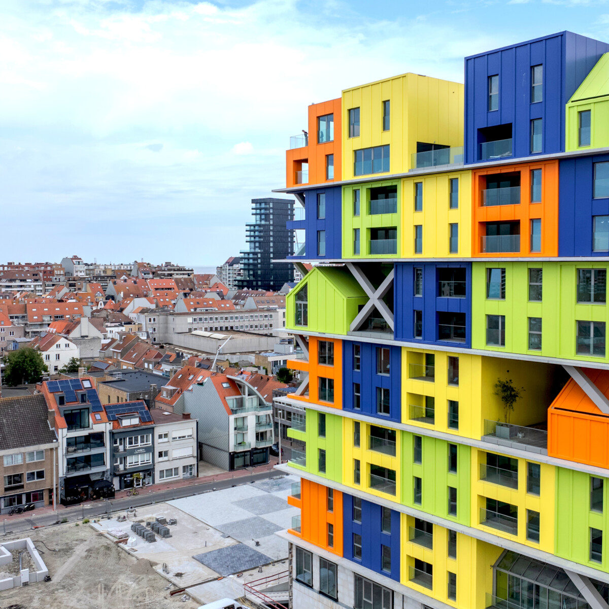 Sur un site niché à 300 m à peine des vagues de Knokke-Heist, se dressera prochainement l’ensemble résidentiel unique de Hoost. Sans précédent en Belgique, ce projet suscite d’ores et déjà un intérêt à l’international. Rien de moins pour le talent du bureau d'architectes parisien Jakob + MacFarlane, qui a conçu une tour iconique aux couleurs vives. À la clef : un spectacle architectural permanent, du jamais vu. Déjà éblouis par l’extérieur de cette résidence monumentale, les « spectateurs » pourront ensuite profiter de la dynamique intérieure de l’édifice.